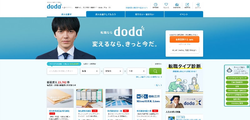 国内で最も有名な求人サイトで、求人数がダントツに多い「doda」。