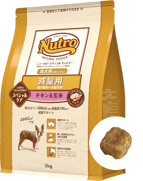 高タンパク質・低脂肪でグルテンフリーの配合により、小型犬の健康をサポートします。