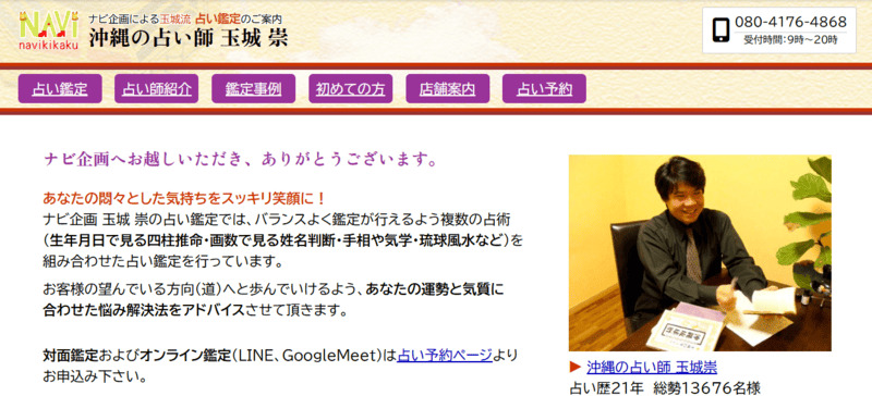 琉球文化と四柱推命を融合させた独自の琉球推命バランス統計学という占術を駆使するのが特徴です。