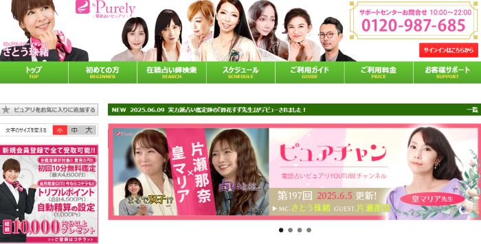 2011年に開始した電話占いピュアリは、メディアで活躍する著名な占い師が多く所属する、評判の高い占いサービスです。