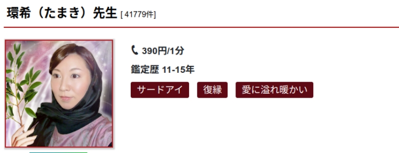 サードアイを駆使したスピリチュアルリーディング力に長けている「環希先生」。