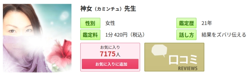 占い師のプロフィールページにアクセスすれば、過去に相談した人たちからの口コミが記載されているので参考にしましょう。