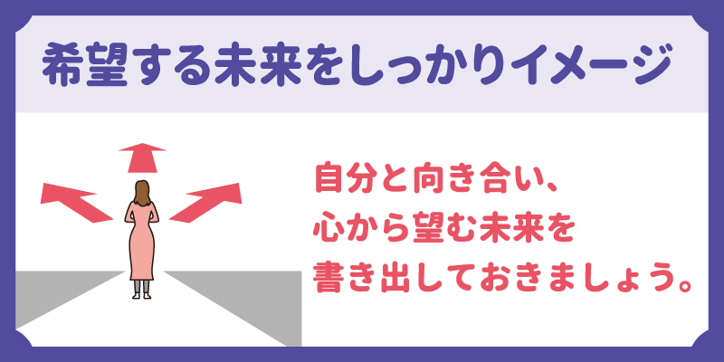 事前に自分と向き合い、心から望む未来を書き出しておきましょう。
